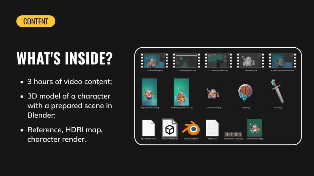 You'll get the skills to create a simple stylized character and improve the level of your work through quality scene setting, lighting and materials.